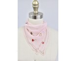 15? x 15? sheer pink silk chiffon handkerchief with hand-painted shamrocks, elephants, horseshoes, ladybugs, and cards in green, red, black, and gold. It was manufactured in Japan as a "Top Hit? Fashion by Baar Beards. It has a few very small holes as pictured but is otherwise in excellent condition.