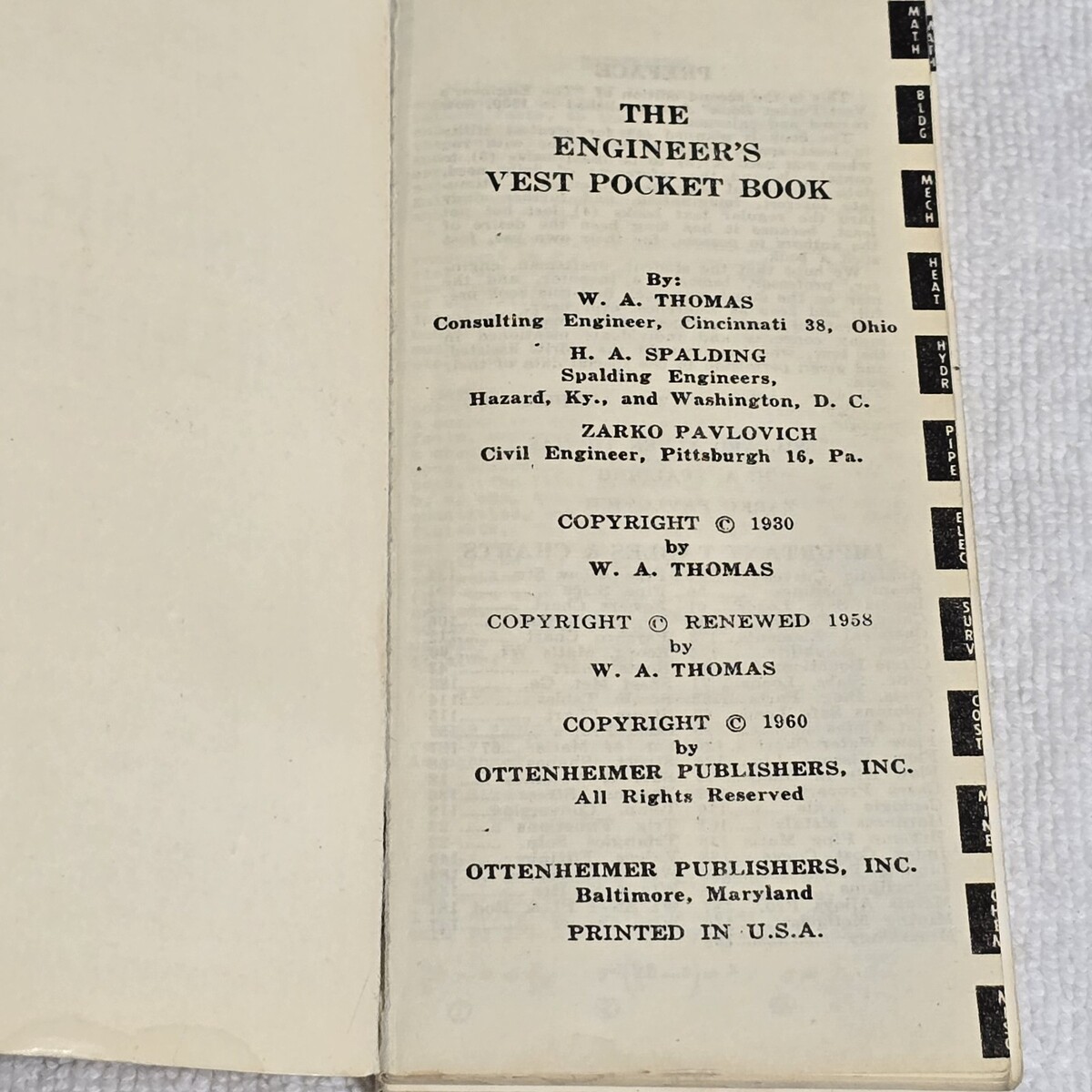 - VTG 1960 Engineers Handbook Vest Pocket Ottenheimer USA