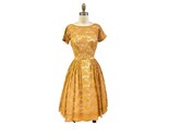 - VTG 1960s Mr. Mort Gold Lace Cocktail Party Prom Dress Lined Tabit Zipper Sz S
