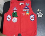 VTG 1970s Campfire Girl Red Merit Badge Patches Button Pins Vest Girls L READ