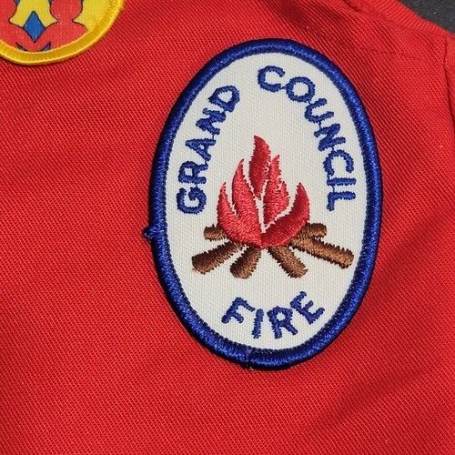Great pre-owned Condition Vintage Rare 1970s Camp Fire Girls Red Merit Badge / Patches / 1 Button / 2 Pins Vest - Youth Girls Size Large. Actual measurements: 14.5" across armpits = 29" chest, 17" length.