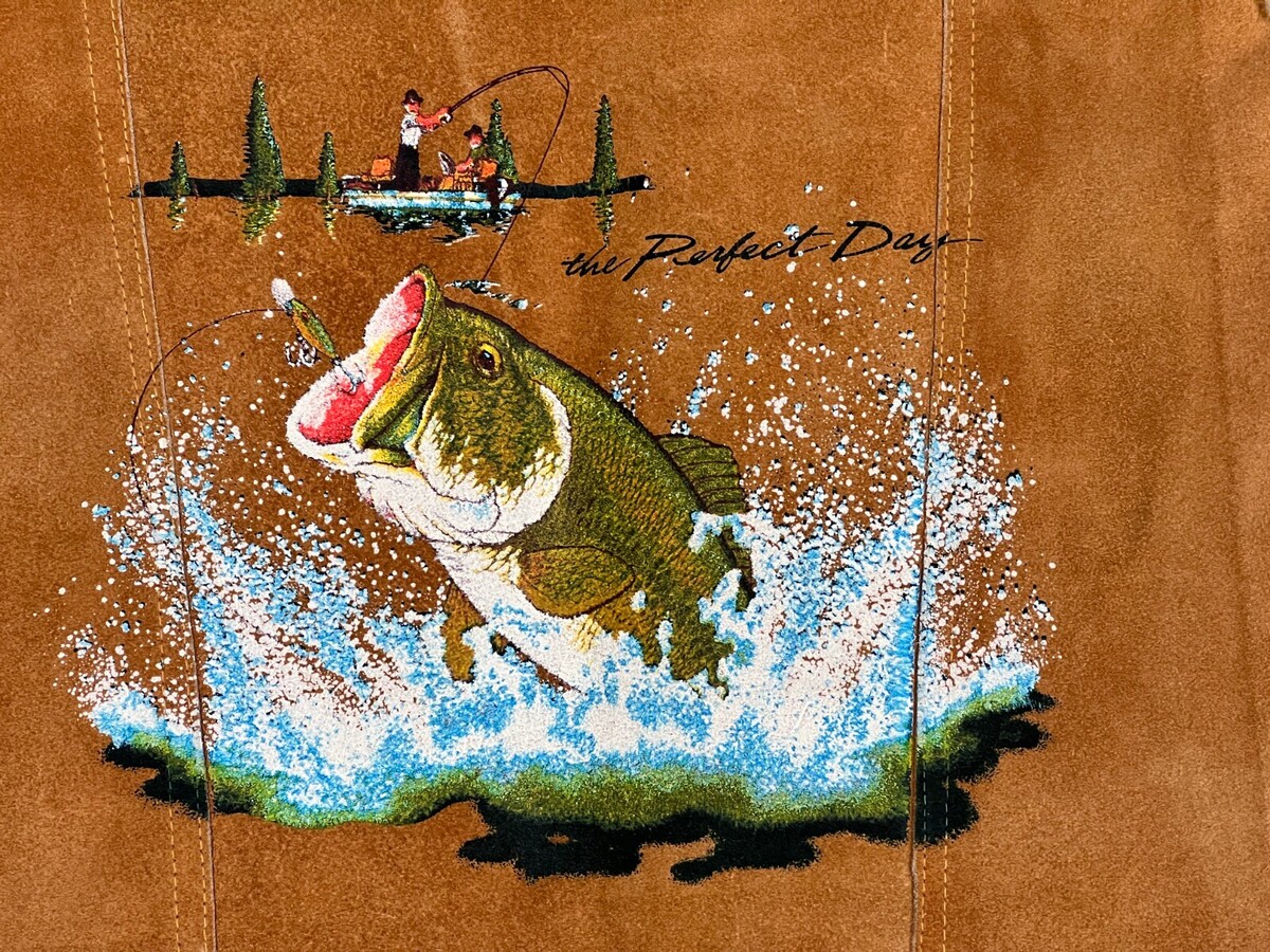 Cheyenne?s ?Ruff and Tough? western line was known in the 1970s for durable ranch-inspired fashion. Hand-painted motifs like this trout reflect the era?s love of custom leather and suede work, popular among outdoorsmen, travelers, and Americana collectors.