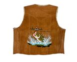 - VTG 1970s Cheyenne Hand Painted Suede Western Vest Trout Back Sherpa Lined Sz L