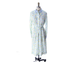 Vintage 1970s Jamison Boutique floral shirt dress, size M/L (bust 46?, hips 48?), in cotton knit with a pastel stylized floral print. Designed with a slight A-line shape, long sleeves, oe button placket, and a matching self-belt. NWOT (new without tags) condition, preowned but never washed or worn.
