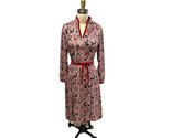 VTG 1970s Marek Knit Day Dress Red Green Paisley A Line Piping Belt Pockets Sz 8