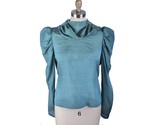 VTG 1970s Rae Hepburn Romantic Blouse High Collar Mutton Sleeve Teal Secretary S