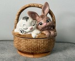 VTG 1979 Ceramic Easter Bunny Bunnies Woven Basket Rabbit Spring Mid-Century