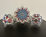 VTG (3) Turkish Ceramic Tile Trivet Trio Mandala 7.25” & 4” Hand Painted
