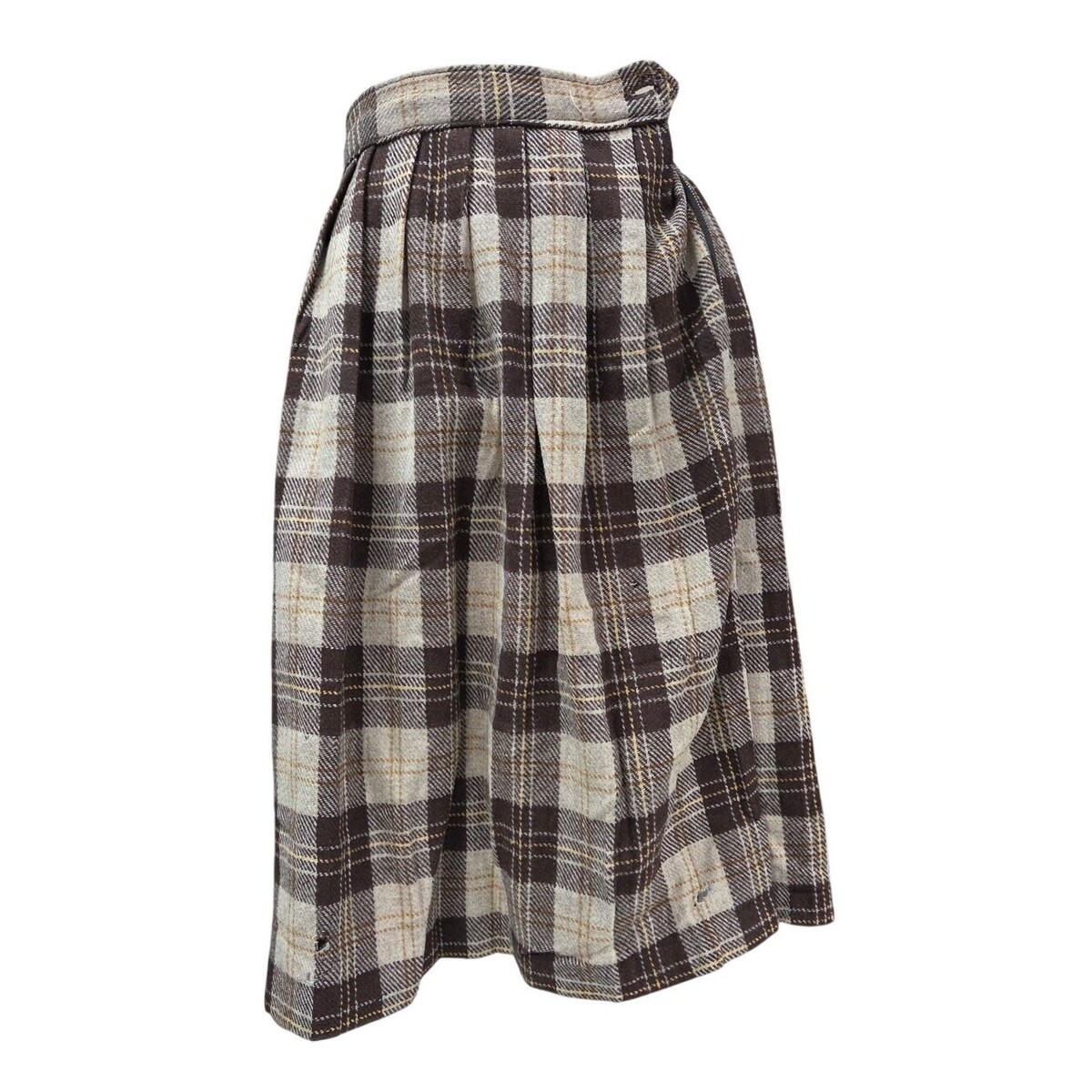 - VTG 40s 50s Brown Cream Wool Plaid Pleated Skirt Costume Piece 23.5” XS