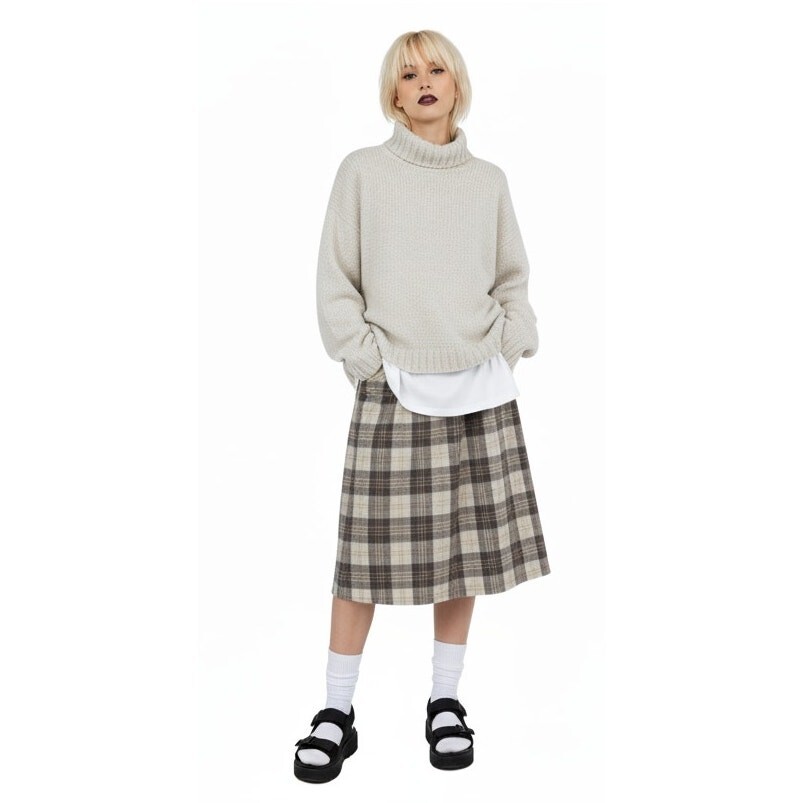 Unlabeled 1940s?1950s wool skirt. Wool plaids like this were staples of mid-century American and British wardrobes, often worn with blouses or knits for daywear.