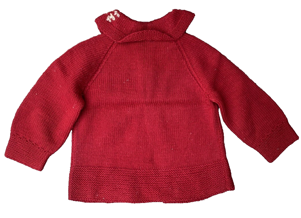 - VTG 50s Hand Knit Child’s Red Wool Sweater Set w/ Blouse & Hat Sz 3–4