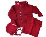 VTG 50s Hand Knit Child’s Red Wool Sweater Set w/ Blouse & Hat Sz 3–4