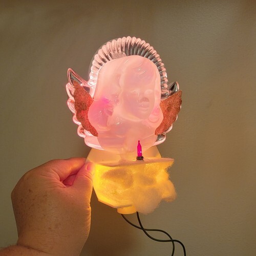 - VTG 70s Doubl Glo Edge Lite Tree Top Pearlized Angel 10 Light Japan READ