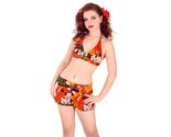 VTG 70s Hawaiian Bikini Set Halter Bra + Boy Leg Shorts Retro Swim S/M