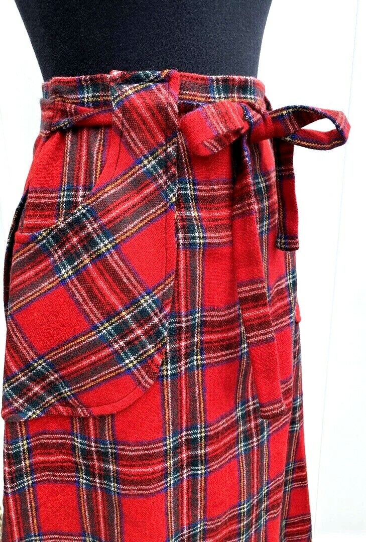 - VTG 70s Mr. Stanley Red Tartan Plaid Wrap skirt School Girly Big Pockets Wool