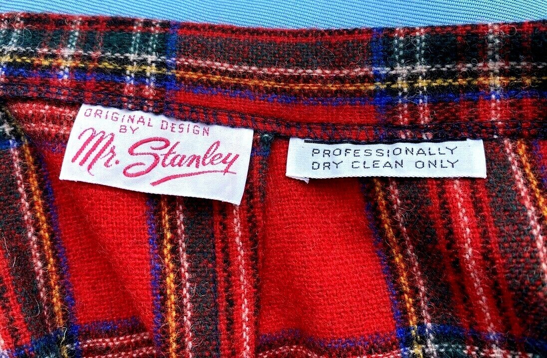 VTG 70s Mr. Stanley Red Tartan Plaid Wrap skirt School Girly Big Pockets Wool