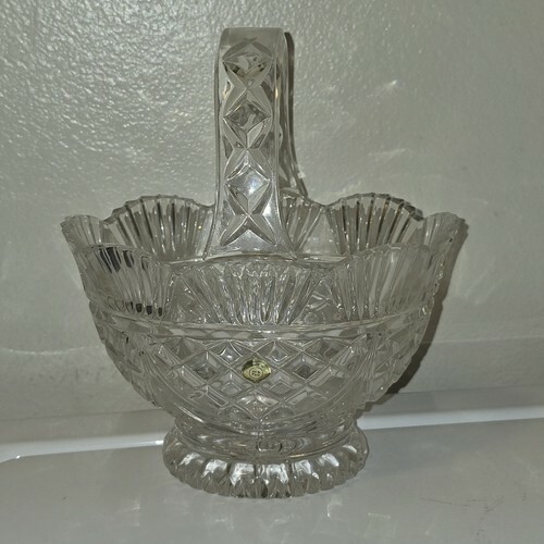 - VTG 8" Lead Crystal Footed Basket Made in Slovakia Fan Design Scalloped Edges
