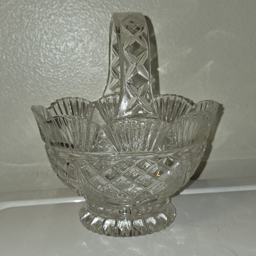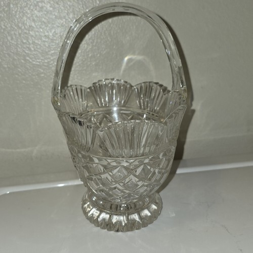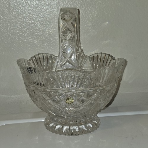 - VTG 8" Lead Crystal Footed Basket Made in Slovakia Fan Design Scalloped Edges