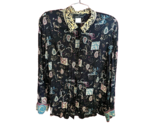 - VTG 80s Carole Little Mosaic Tile Print Rayon Blouse Black Sz 12 Germany Fabri
