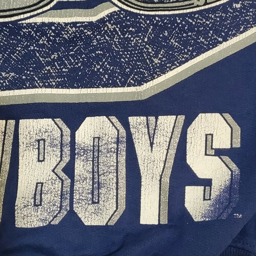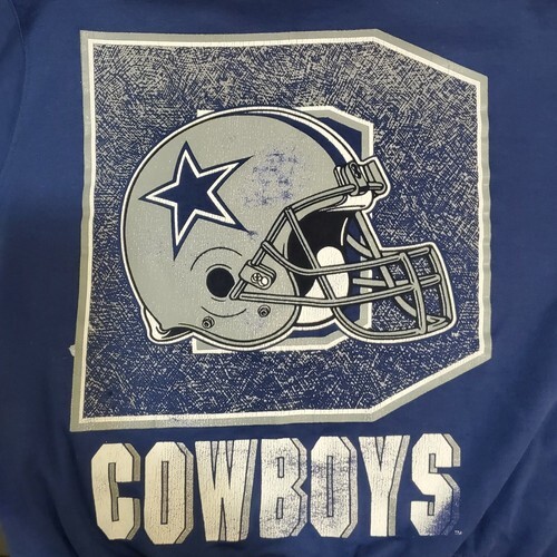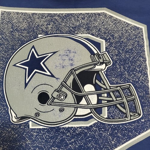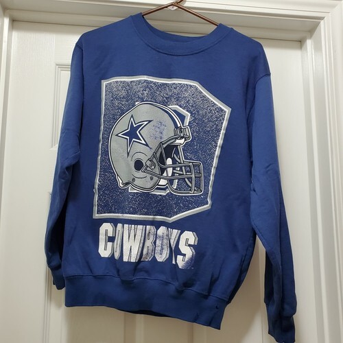 Vintage 80s Team Rated NFL Dallas Cowboys Large Helmet Logo Blue / Gray Sweatshirt - Made in USA Men's M. Actual measurements: 40" chest, 25" length. Cotton / Polyester.