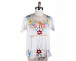 - VTG Amalin Mexican Top White PolyCotton Colorful Embroidered Festival Sz M/L