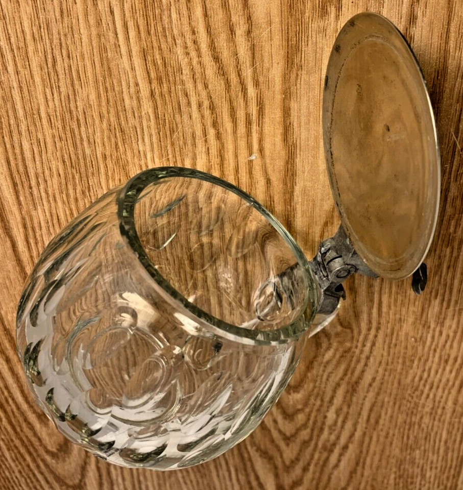 This antique Art Nouveau heavy glass beer cup with a lid is a stunning piece made in Germany during the early 1900s.