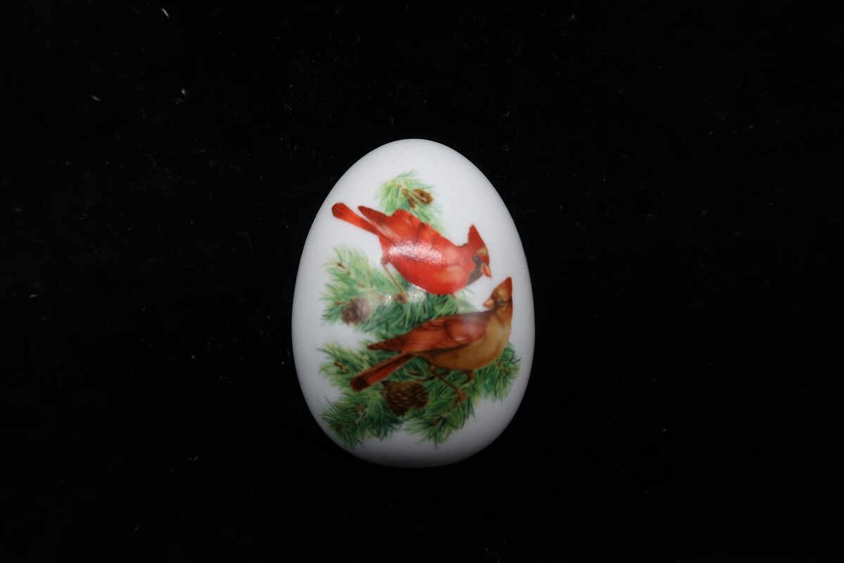 - VTG Avon Four Seasons Porcelain Egg Birds Male & Female Cardinal Pine Branch