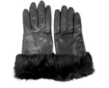 - VTG Black Leather Gloves Fur Cuff Women Sz L Korea