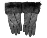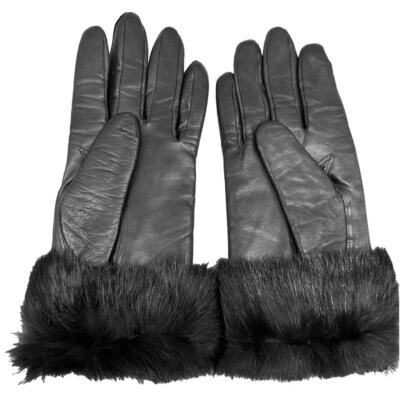 - VTG Black Leather Gloves Fur Cuff Women Sz L Korea