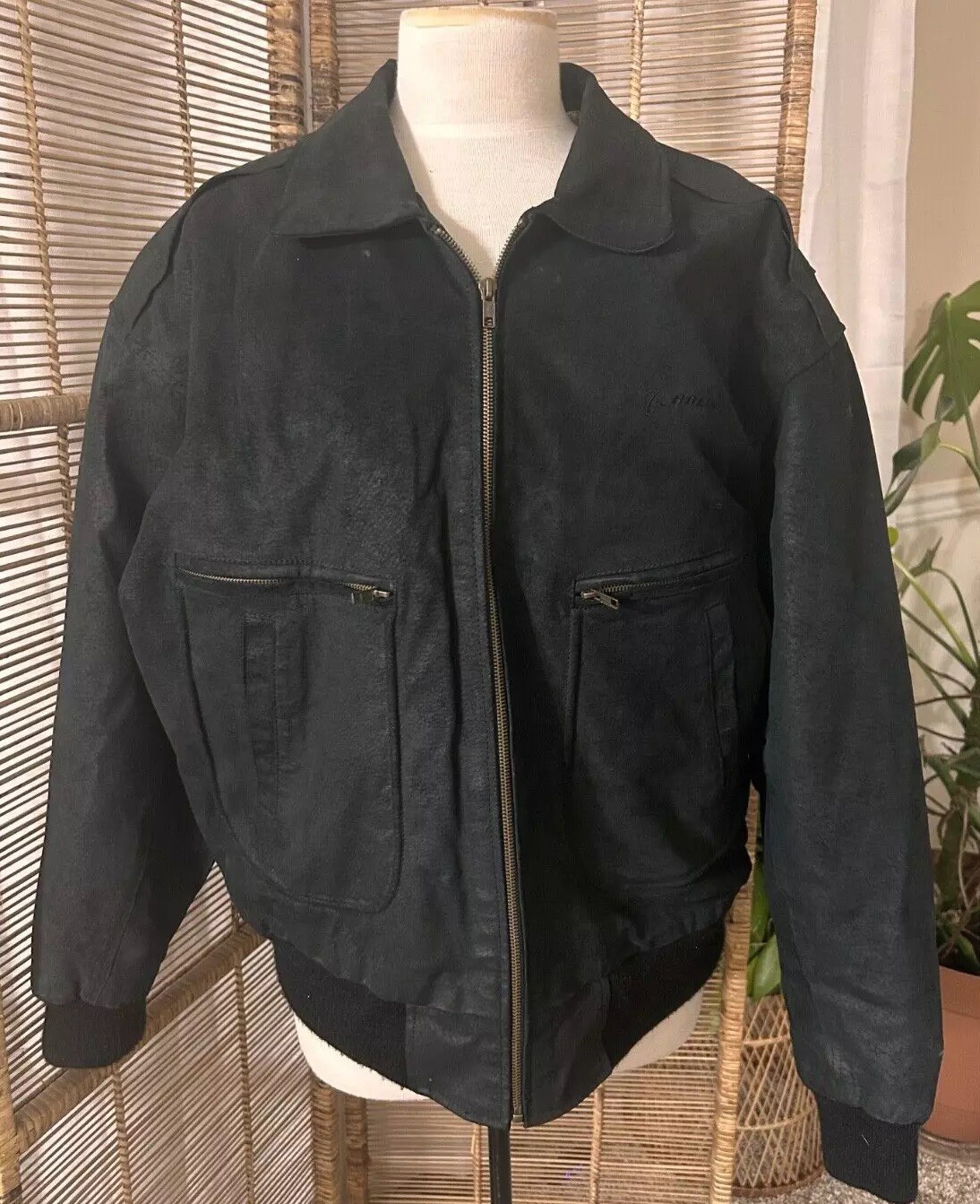 VTG Boeing black Bomber 100% Leather McDonnell Douglas Pilot Aviator Flight Coat