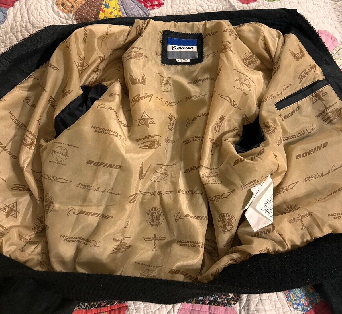 - VTG Boeing black Bomber 100% Leather McDonnell Douglas Pilot Aviator Flight Coat