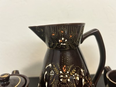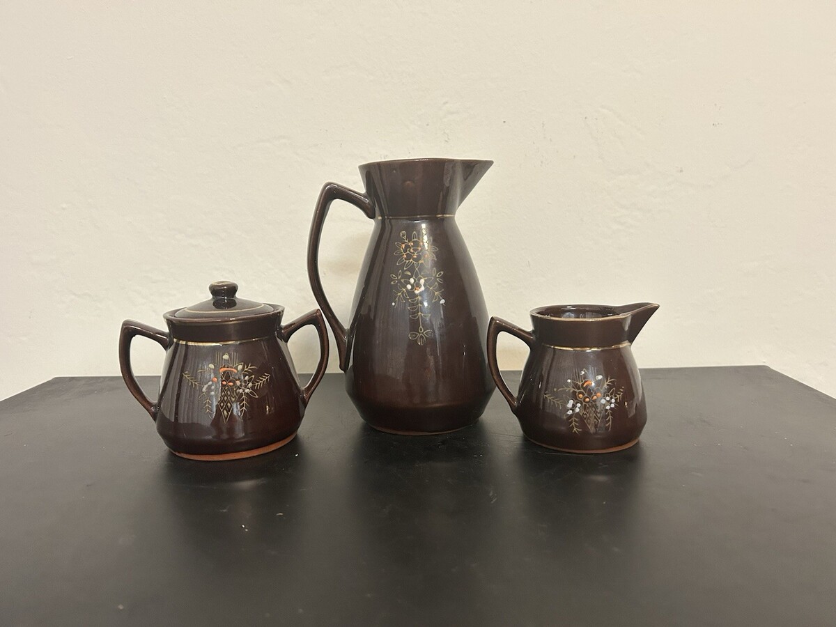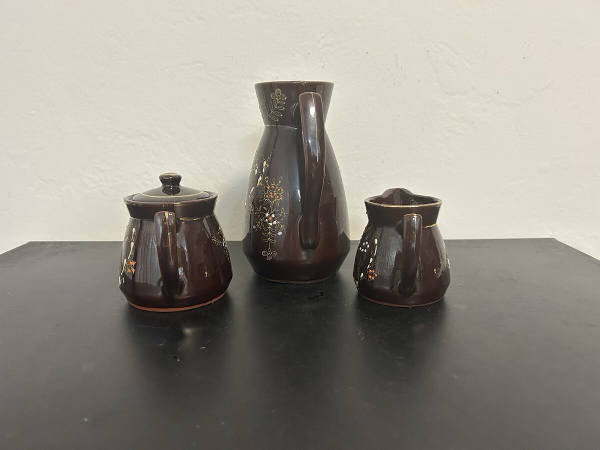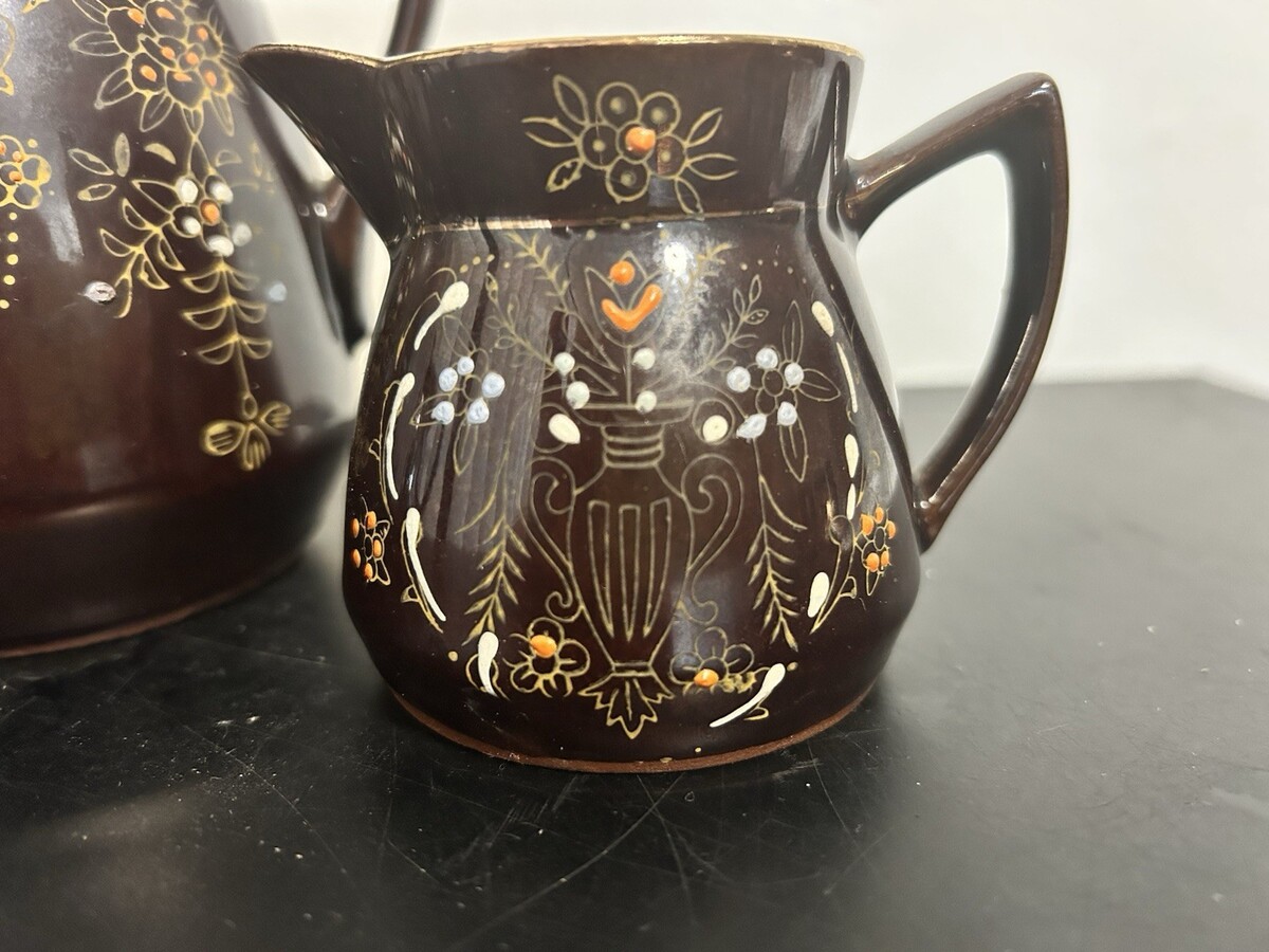 - VTG Brown Betty Hand Painted Japanese Redware Coffee Tea Set Present Gift Idea