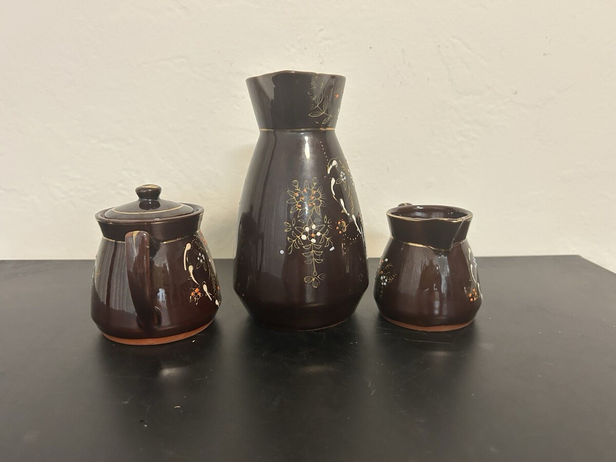 VTG Brown Betty Hand Painted Japanese Redware Coffee Tea Set Present Gift Idea