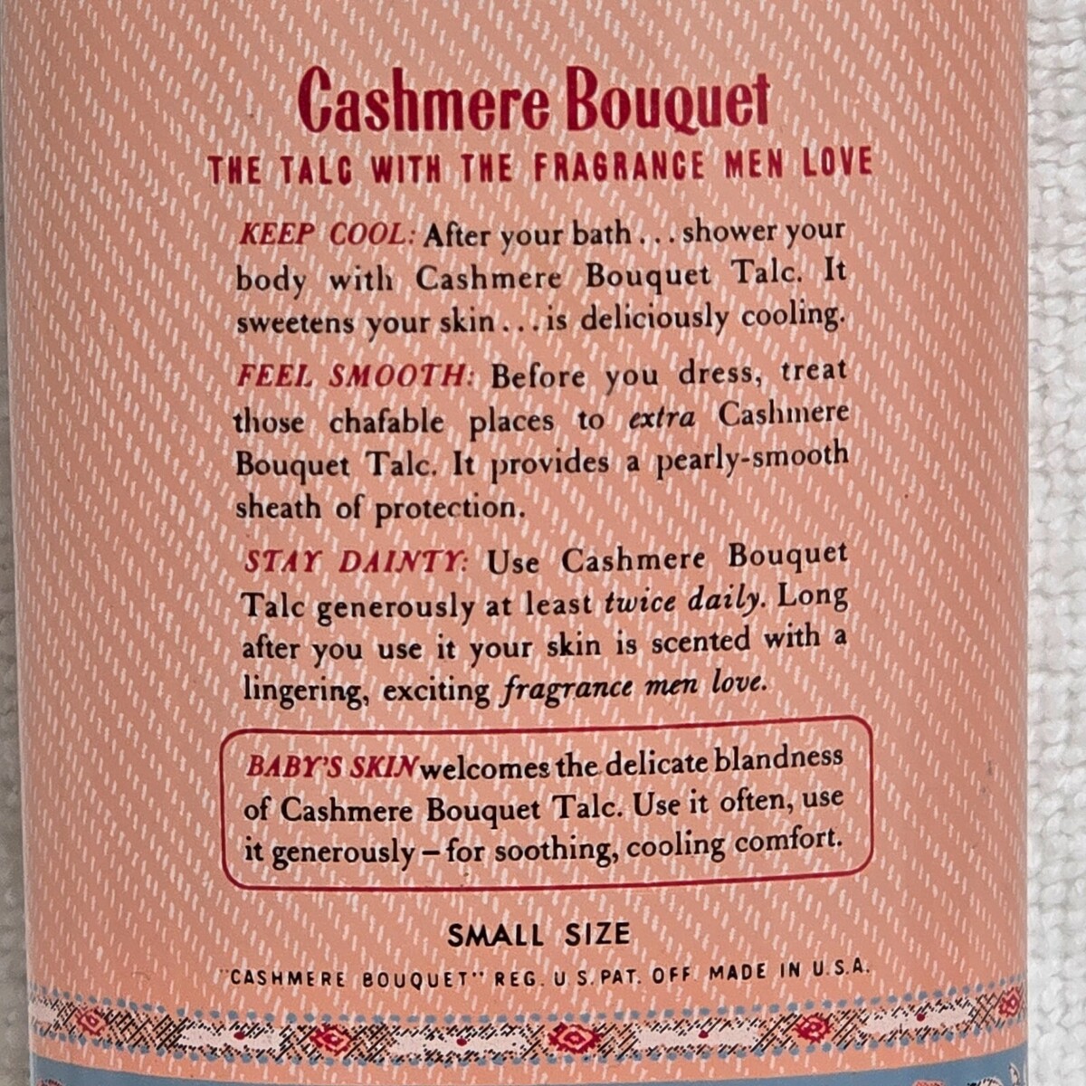 - VTG Cashmere Bouquet Talcum Powder Small Pink Tin Colgate Palmolive USA 1.5 oz