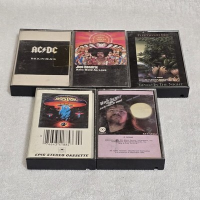 - VTG Cassette Lot AC/DC Fleetwood Mac Jimi Hendrix Bob Seger Boston Classic Rock