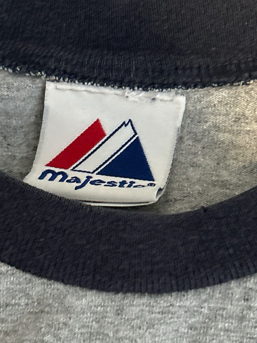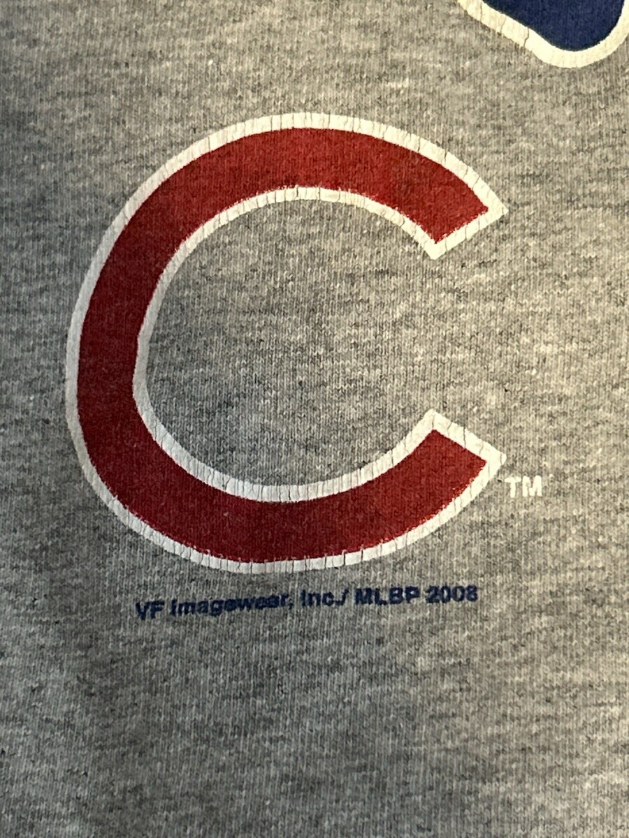 VTG 2000's Chicago Cubs MLB 3/4 Raglan T Shirt Majestic Tag Adult Large Gray/w Blue Dated 2008