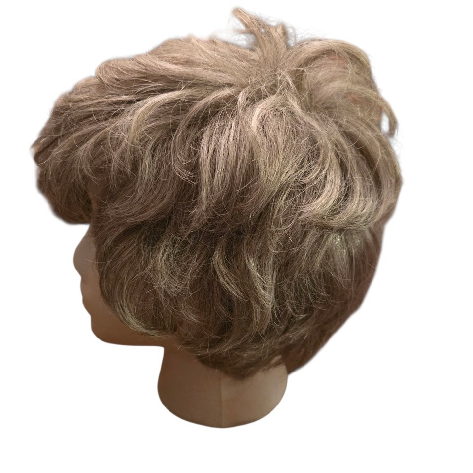 Step into timeless style with this vintage Christine Jordan wig, featuring a classic short layered cut in a chic ash gray tone. The tag reads A/L, meaning it fits both average and large head sizes thanks to its stretch cap design. Made from a quality blend of 80% Modacrylic and 20% PVC fibers (from Japan), this wig offers a soft, natural look with feathered layers and a salt-and-pepper finish.
