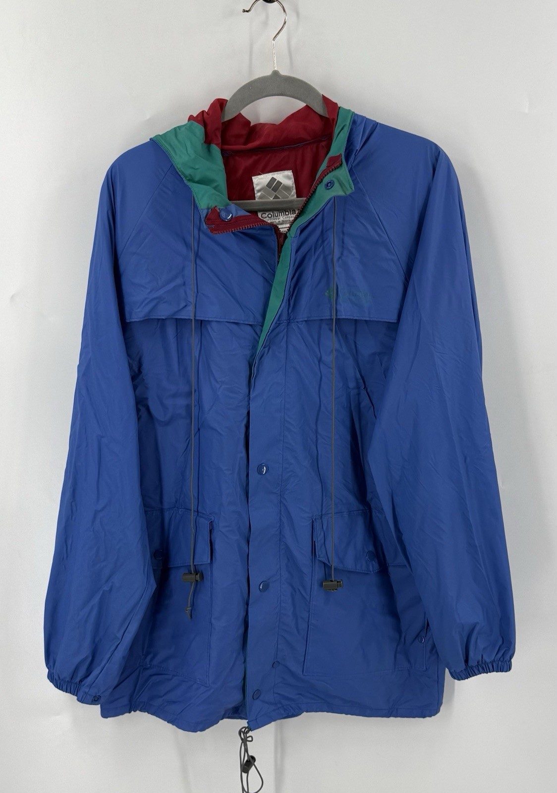 - VTG Columbia PVC Rain Coat Mens Medium Blue Colorblock Outdoor Water Resistant