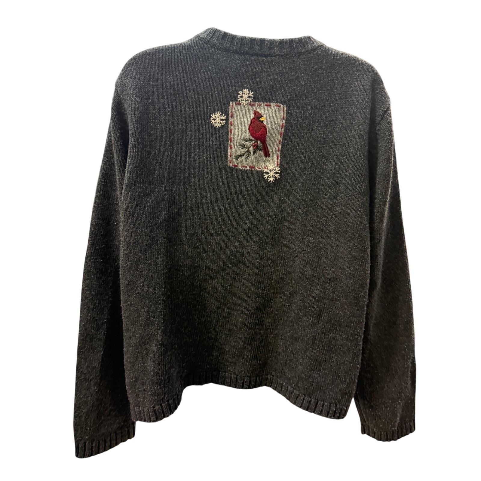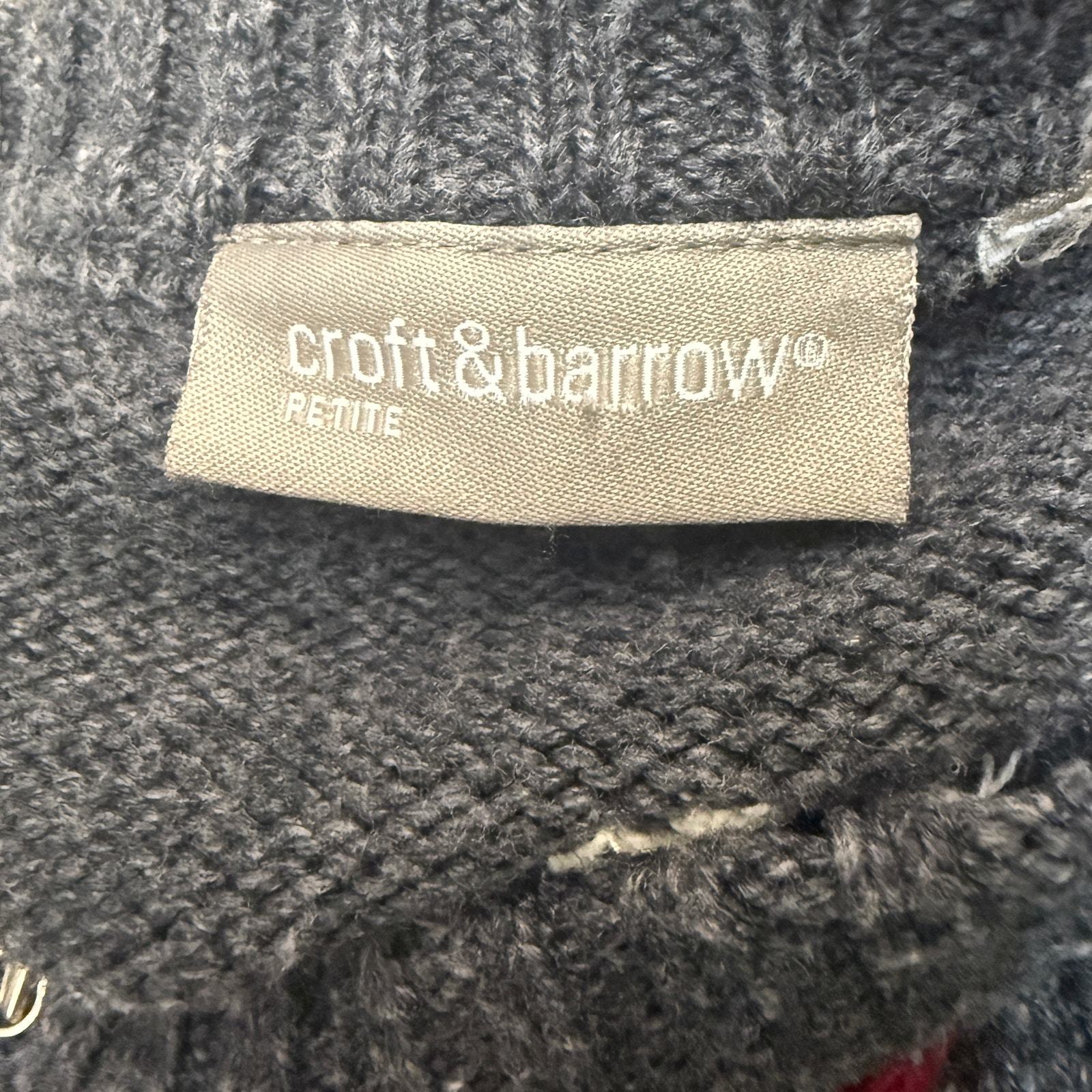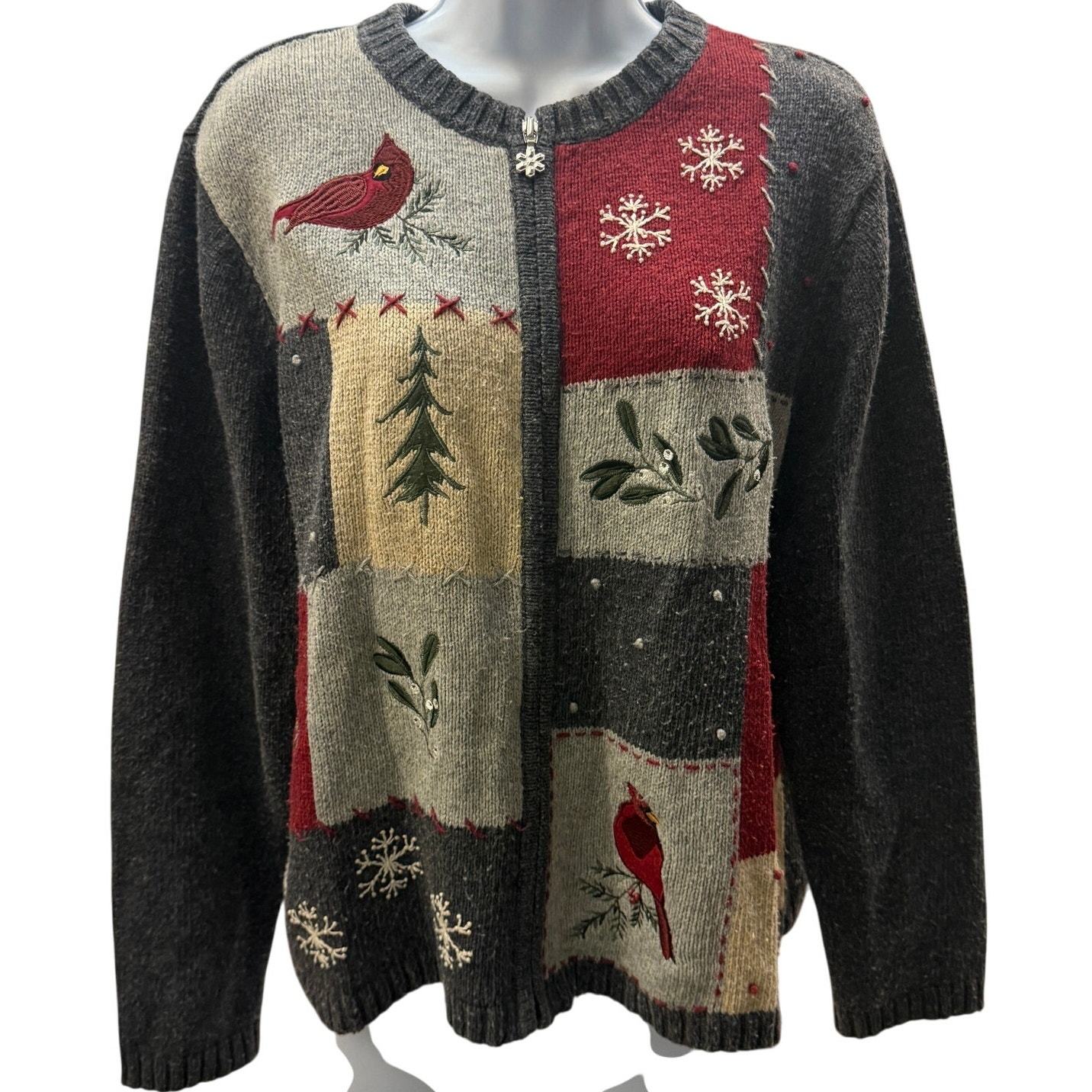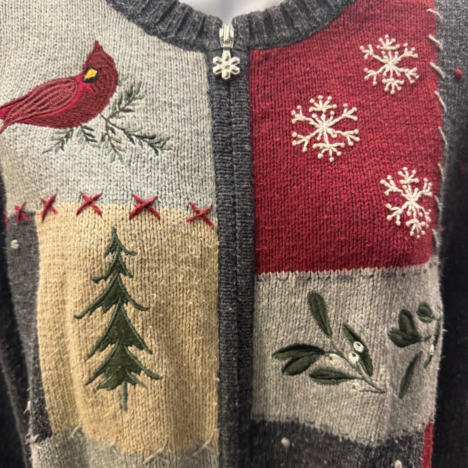 - VTG Croft & Barrow Holiday Christmas Sweater Womens L Petit Zip Red Cardinal