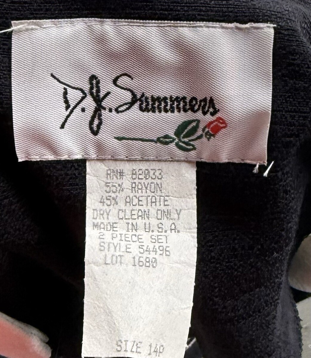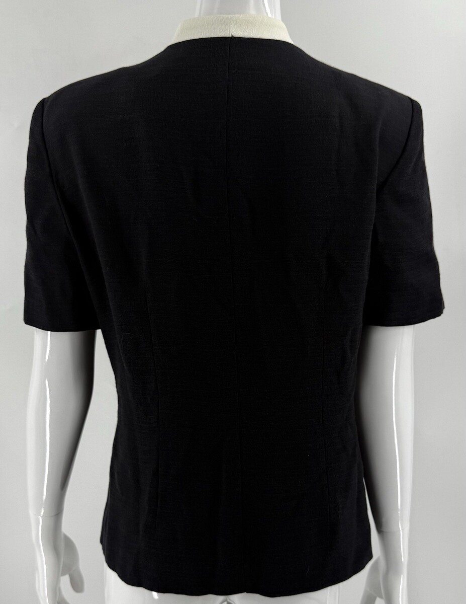 - VTG DJ Summers Top Size 14 Petite Black White Embroidered Zip Up Jacket Womens