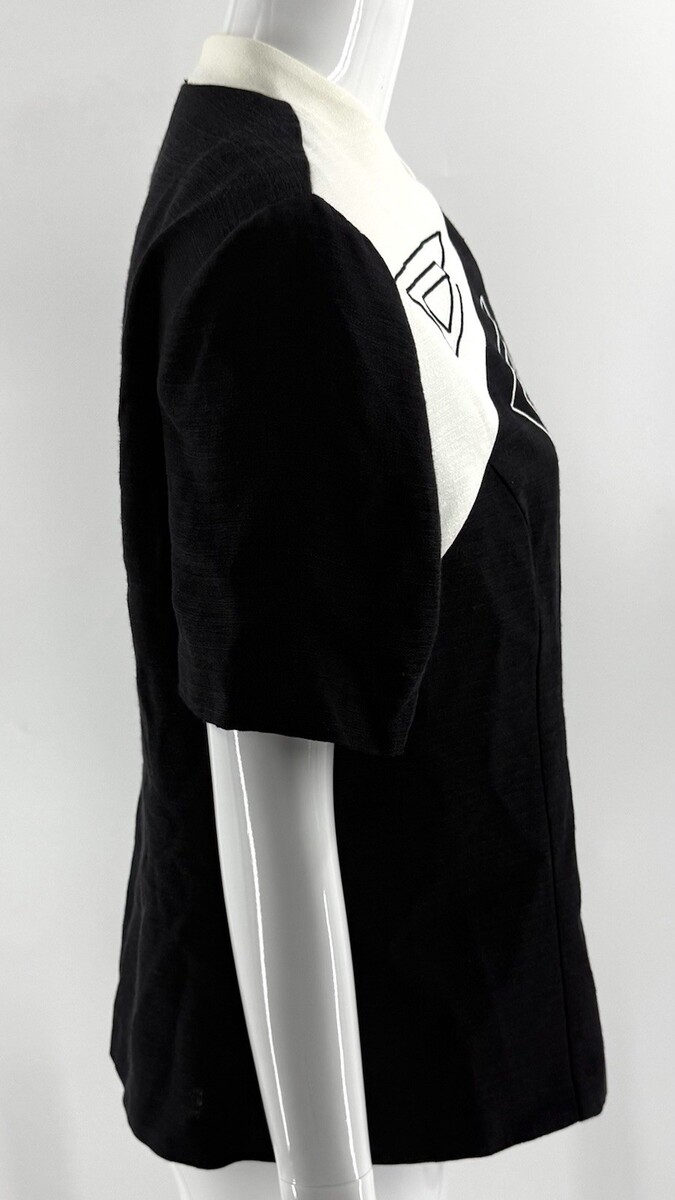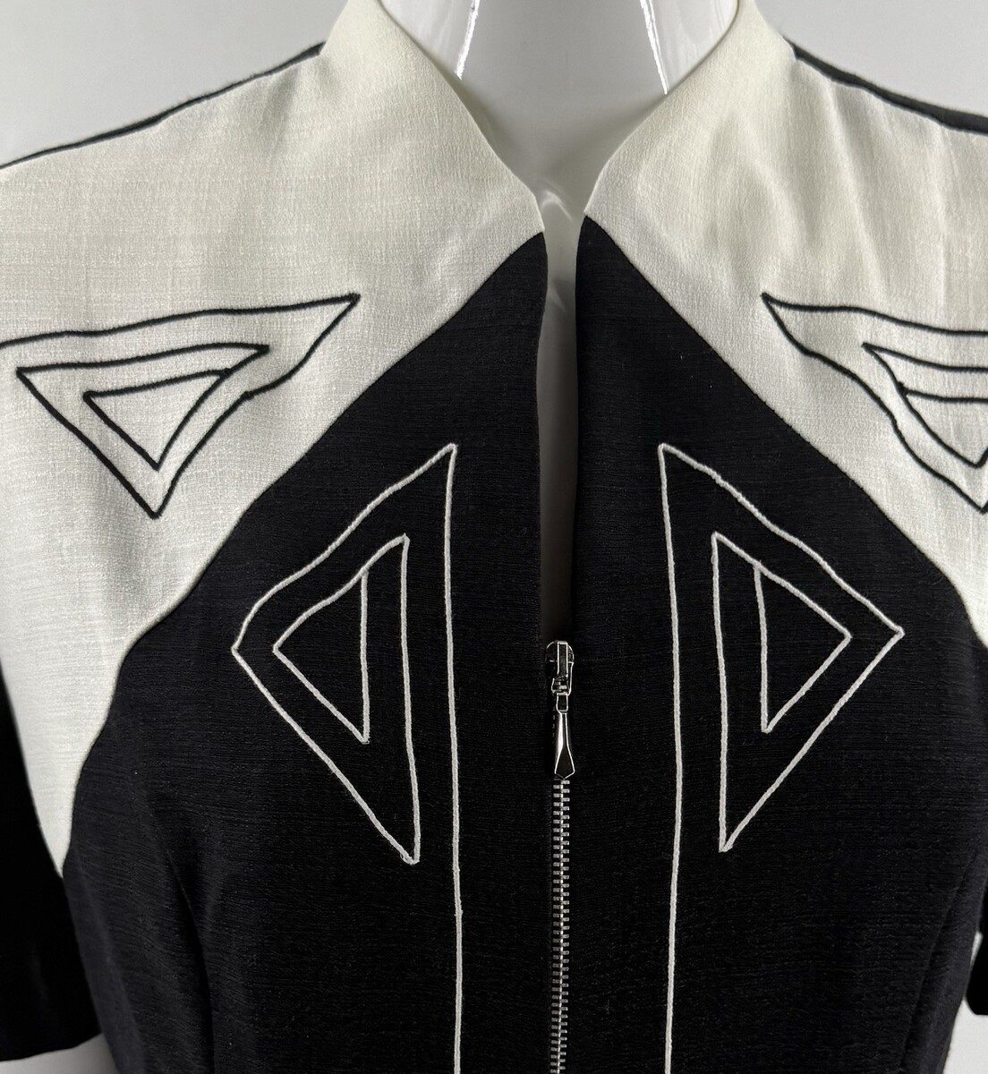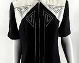 VTG DJ Summers Top Size 14 Petite Black White Embroidered Zip Up Jacket Womens