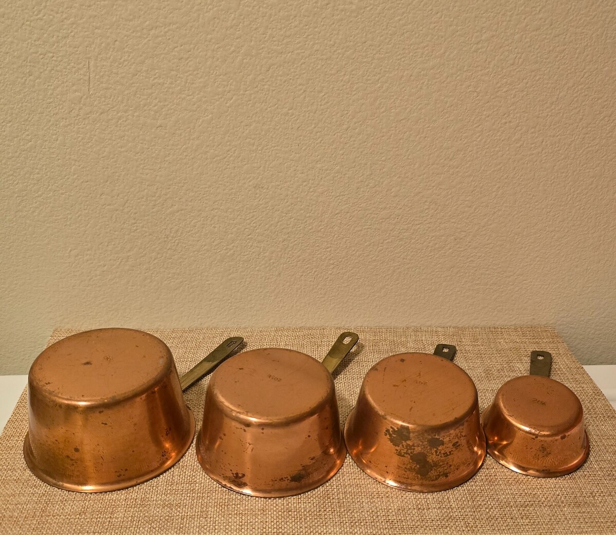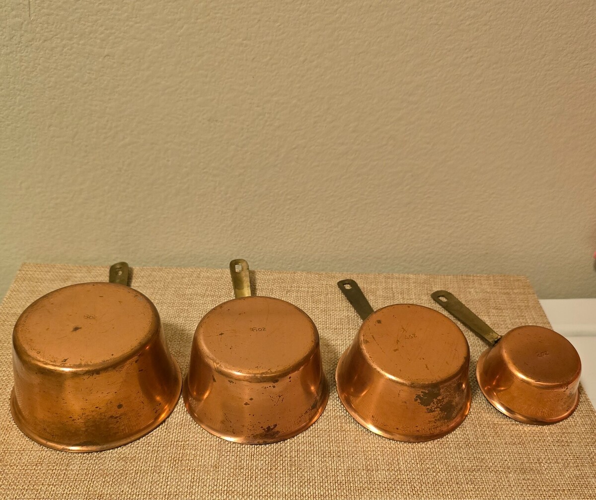 - VTG Daewoo Set Of 4 Copper Measuring Cups w/ Brass Handles Korea 2, 4, 6, 8 oz