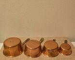 Vintage Daewoo Housewares Set Of 4 Copper Measuring Cups w/ Brass Handles - 2 / 4 / 6 / 8 oz "Saucepan" style nesting cups! Made in Korea.