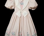VTG Daisy Kingdom Girls Sz7 Pink Striped Floral Party Dress Puff Sleeve 1990s