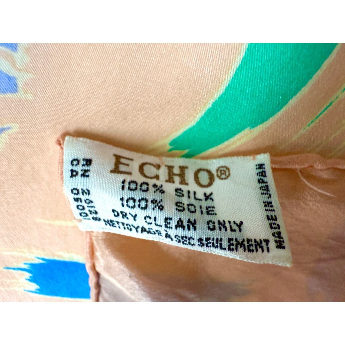 - VTG ECHO Salmon Pink Ladies Silk Scarf Colorful Abstract Design 80s Japan 26x26