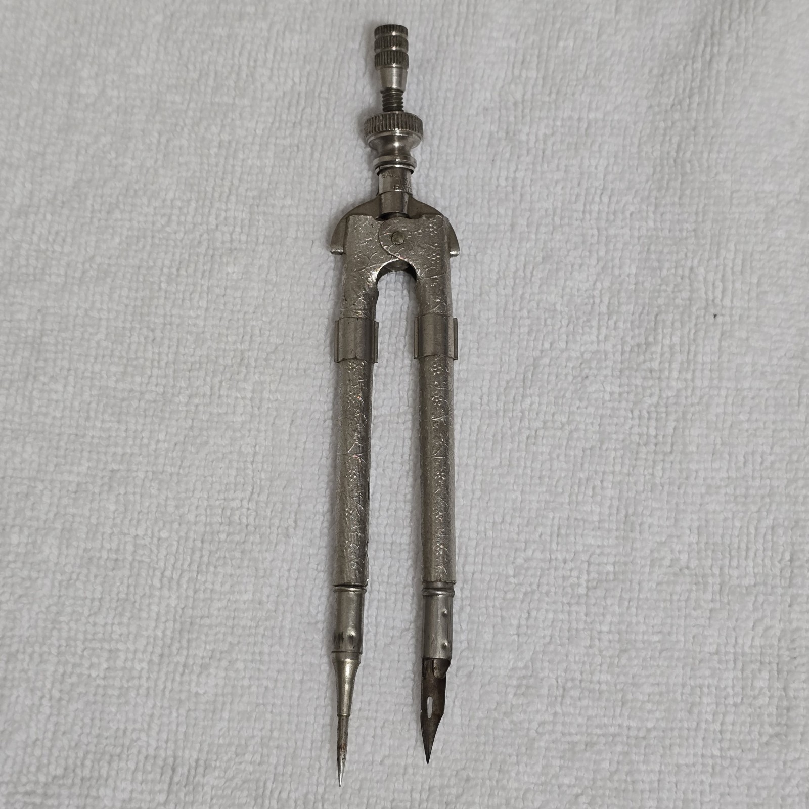Vintage Eagle Pencil Company Silver Embossed Drafting Compass Tool w/ Eagle Fountain Nib - Made in USA.