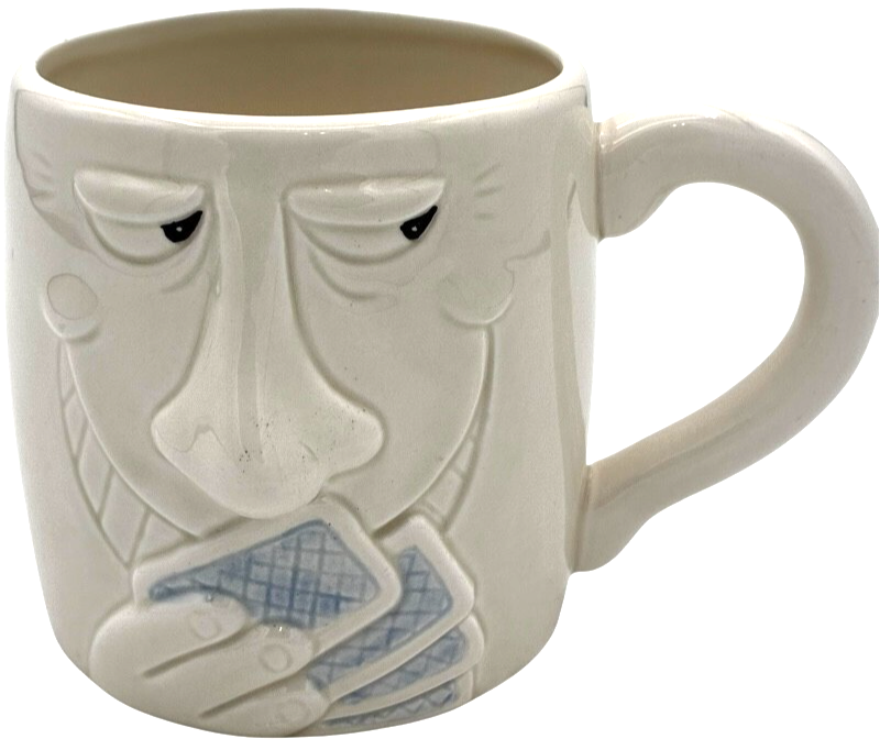 - VTG Fitz and Floyd Trust Your Partner Poker Face Mugs - sad face looking up