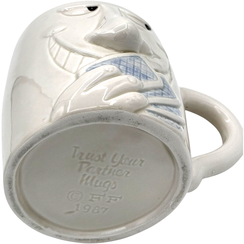 VTG Fitz and Floyd Trust Your Partner Poker Face Mugs - sad face looking up