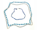 VTG Glass Seed Bead Flower Jewelry Blue White Handmade 1930s Necklaces Bracelet
