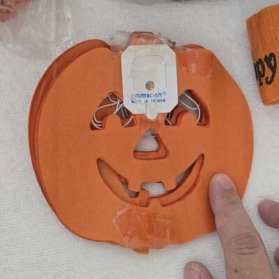 - VTG Halloween Crepe Paper Streamer Black / Orange Jack of Lanterns Lot Of 6 +
